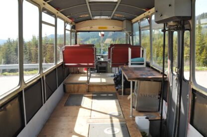 cartouche steht dir und deiner Vision eines fahrenden Ateliers während des gebuchten Zeitraumes inkl. Chauffeur zur freien Verfügung. Dabei kann sich deine Gruppe bis maximal 16 Personen voll auf die Ausfahrt, euren Workshop oder das ausgedachte Projekt konzentrieren, denn neben der Fahrt können wir uns optional auch um die Verpflegung sorgen.