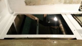 Vor der Weihnachtspause konnten wir die Schweissarbeiten im Innenraum abschliessen. Insgesamt bearbeiteten wir rund 10 bis 12 ausführliche Rostschauplätze am Tragwerk des Bodens. Anstelle der rostigen Teile sind nun neue, rostschutzbehandelte Metallstücke eingesetzt: alles wieder salonfähig. Zur Feier legten wir die bereits behandelten Bodenplatten wieder ein – ein Genuss, den restaurierten Boden zu sehen. Vor der definitiven Bodenverlegung kommt noch eine Dämmschicht darunter.