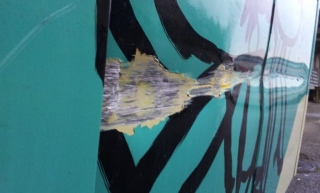 Nicht vergessen darf man die in Pasteltöne gehaltene Karosserie, welche mit ihren ulkigen Figürchen gar nicht im Interesse der neuen Besitzer war und da und dort mit Rost versehen war.