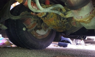 Gemächlich nehmen wir Kenntnis von den tausend Elementen. Die offensichtlichen Problemzonen (eingerostete Teile, Rost an einzelnen tragenenden Chassis-Elementen, ein Dieselleck, Druckluftlecks) wurden nach und nach sicht- oder hörbar. Die Liste der benötigten Ersatzteile wurde richtig lang: neue Scheiben, neue Spiegel, beschädigte Dachluken, Scheibenwischer defekt, eine Handpumpe für die Dieselzufuhr, neue Reifen.